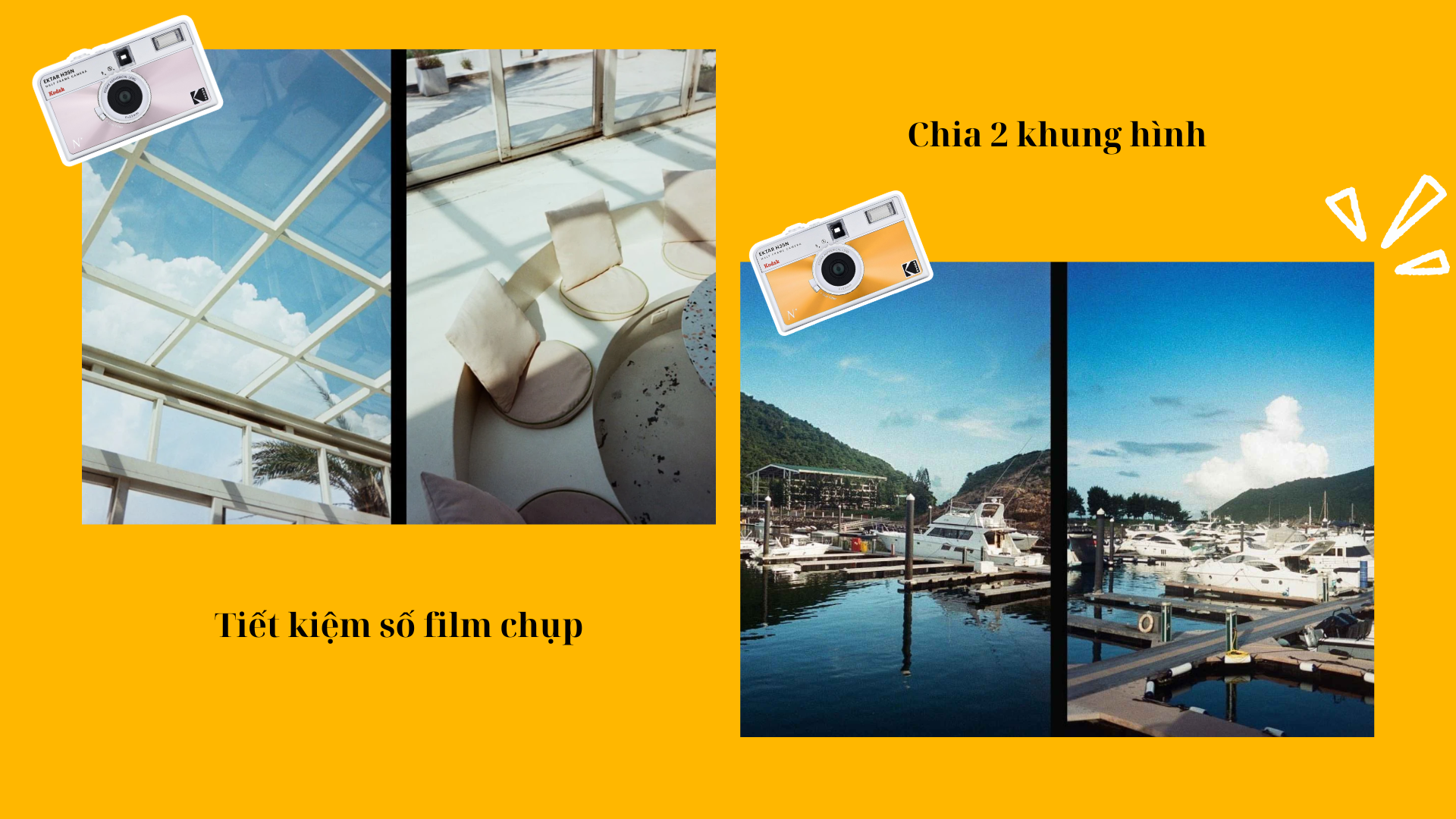 Kodak Ekrar H35N là dòng máy ảnh chụp khung half-frame, sử dụng film cuộn 35mm. Chiếc máy sẽ là một lựa chọn vô cùng tiết kiệm, người dùng có thể chụp được 72 tấm ảnh trên cuộn film 36 tấm. Ngoài ra, máy còn có những chế độ chụp sáng tạo như star-filter hoặc phơi sáng, đem lại những bức ảnh thú vị hơn.