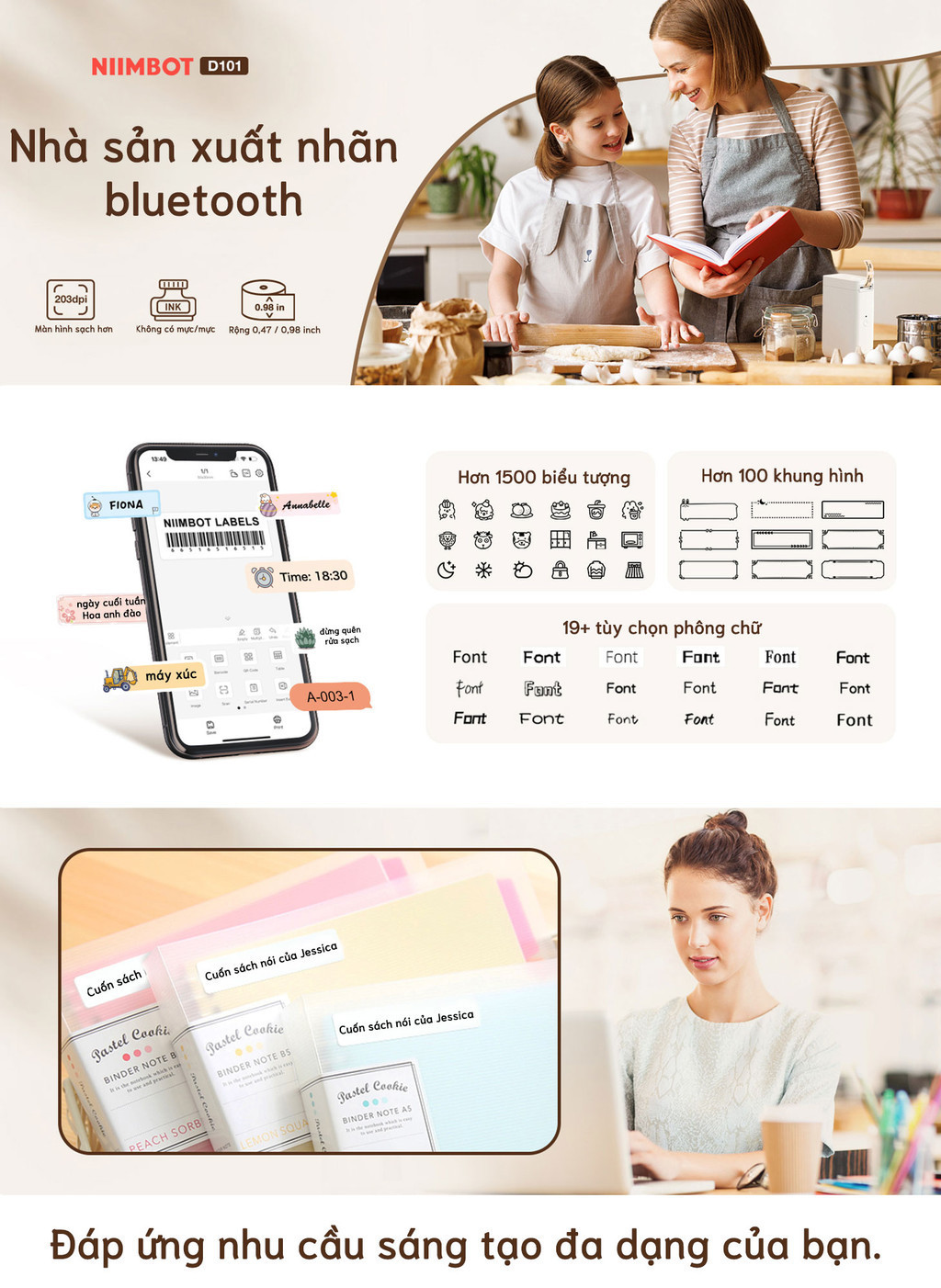 - Vui lòng sử dụng đúng kích thước nhãn dán phù hợp với D101. Thương hiệu Niimbot chỉ sử dụng nhãn dán của Niimbot, không tương thích với các thương hiệu khác.