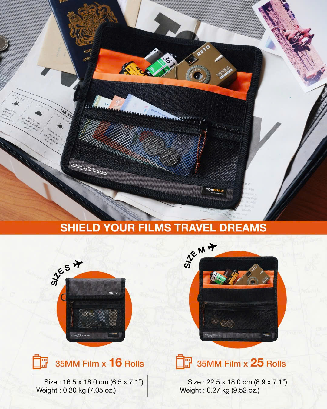 RETO Film X-Protect là túi đựng film chuyên dụng dành cho người chơi máy ảnh film, được thiết kế nhằm bảo vệ film khỏi các tác nhân gây hư hại trong quá trình di chuyển, đặc biệt là tia X từ máy soi an ninh sân bay.